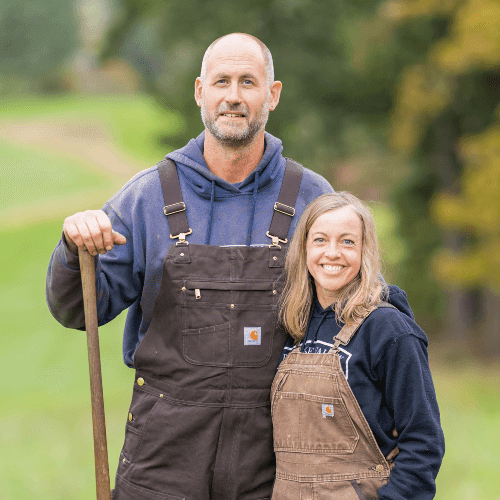 Brian and Kendra Harvey started their farming experience in Chilliwack BC in 2016. After starting with breeding registered Nigerian Dwarf goats, free range chickens, ducks and turkeys, and Red Russian garlic they decided it was time for something bigger. With a passion for farming they decided to relocate their family of 4 (plus two dogs, two cats, herd of goats, and a handful of chickens) to Nanaimo on Vancouver Island in 2020. They found a beautiful 40 acre property backing onto the Nanaimo river, and brought some new additions to the farm; a number of speckled park cattle, pigs, and handful of ducks and turkeys. They have adapted the farm over the past few years and have a heavy focus on Grass fed beef, Hay, and farrow to finish pasture raised pork.